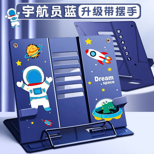 Adjustable Desktop Book Stand for Kids – 6-Gear Reading Rack with Book Clips - Blue