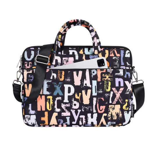 Laptop Shoulder Bag – Waterproof Polyester Case with Multicolor Alphabet Print (13"-15")