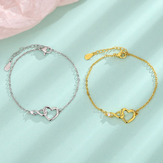 1 pc. Diamond-Studded Heart-Shaped Infinite Love Bracelet - Silver