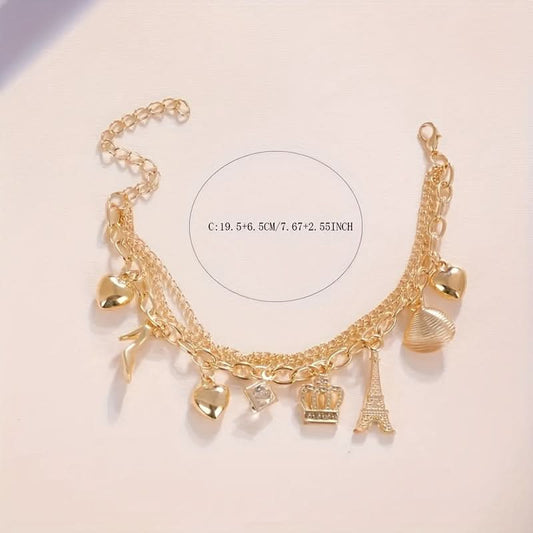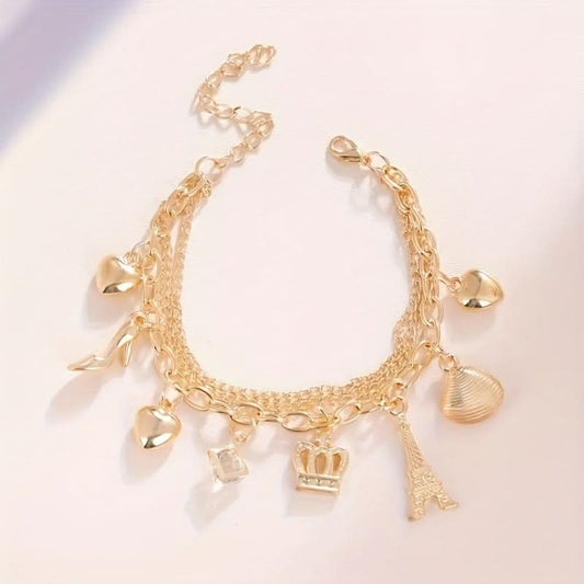 This Elegant Tassel Pendant Bracelet brings a sophisticated touch to any outfit. Made with golden-plated alloy, this bracelet features a stunning crown heart pendant and delicate tassels that add movement and style to your wrist. Its adjustable chain ensures a perfect fit for all...- ₹ 689