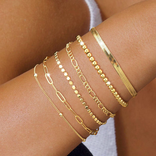 Pack of 6 pcs. Dainty Chain Bracelets Set for Women - Golden