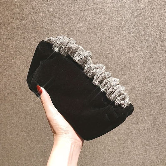 Make a lasting impression with this elegant black velvet evening clutch, designed to add a touch of glamour to any outfit. Perfect for weddings, dinner parties, and festive events, this clutch features a dazzling rhinestone-embellished ruched handle that catches the light beautifully, adding a...- ₹ 2,909
