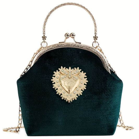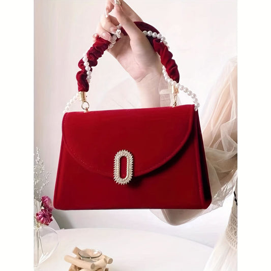 Elegant Red Velvet Bridal Clutch with Chain Strap - Burgundy