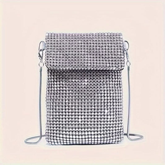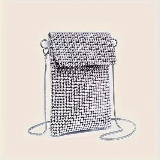 Silver Rhinestone Crossbody Clutch with Chain Strap - Silver