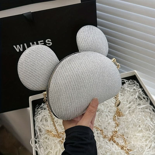 Luxurious Moon-Shaped Clutch, Sequin Fantasy Evening Bag - silver