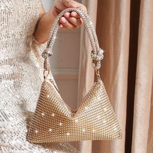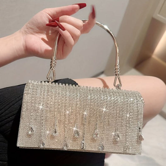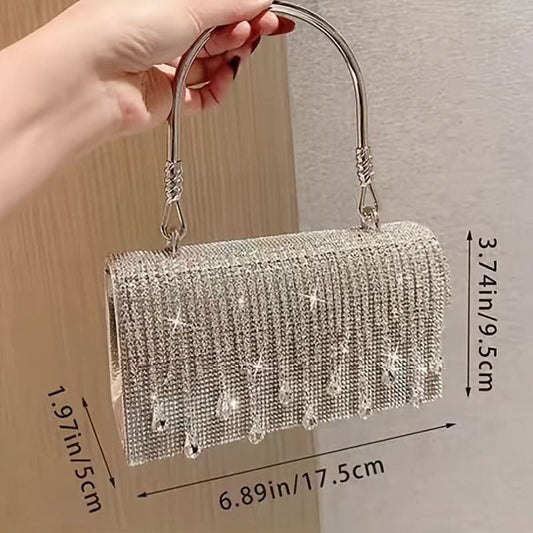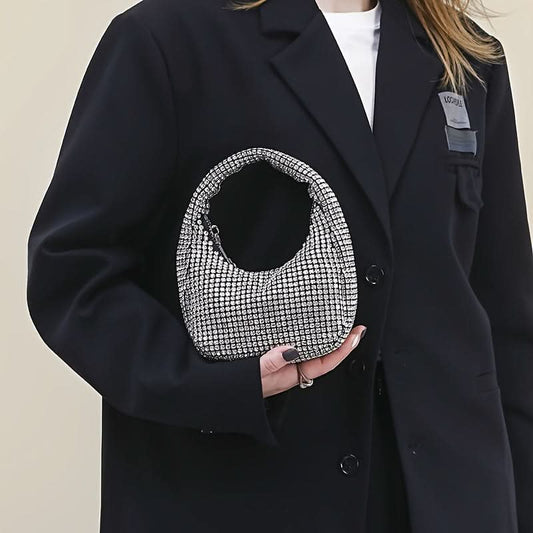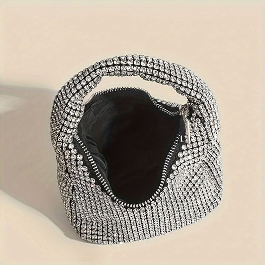 Glamorous Rhinestone Evening Clutch, Sparkling Party Bag - silver