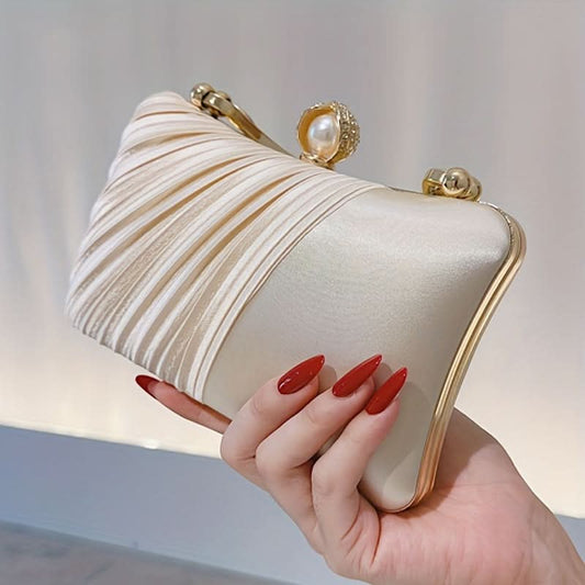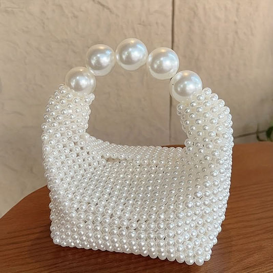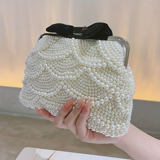 Mini Pearl Beaded Clutch Bag for Women - Beige Color