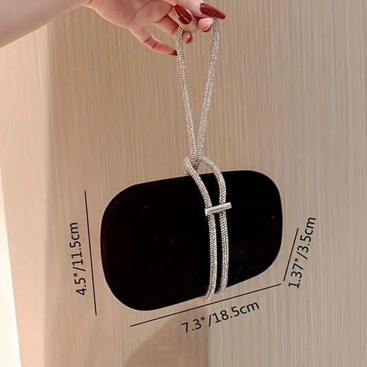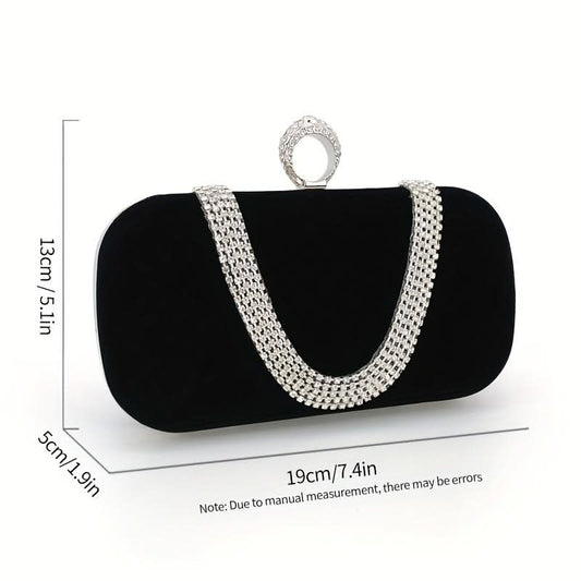 Black Velvet Evening Clutch with Rhinestone Handle - Black