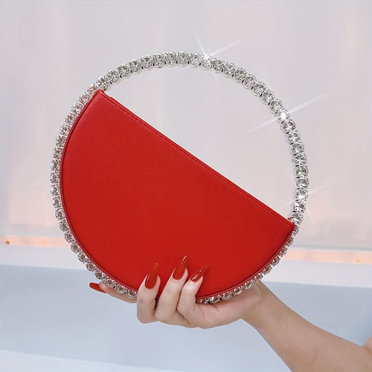 Add a touch of elegance to your evening wear with this Rhinestone Round Ring Evening Bag. Crafted from luxurious white faux leather, this clutch is adorned with sparkling rhinestones, offering a chic and trendy look for formal events like parties, proms, and weddings. The...- ₹ 4,309