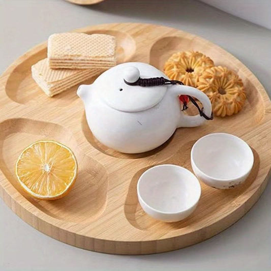 Wooden Round Serving Platter with Compartments