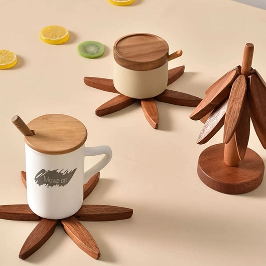 Wooden Tree-Shaped Tripod Coaster Set - 1 Set
