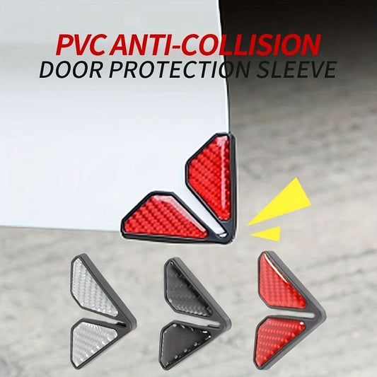 Universal Carbon Fiber Car Door Guard Stickers – Reflective Anti-Collision - Red (2pcs)