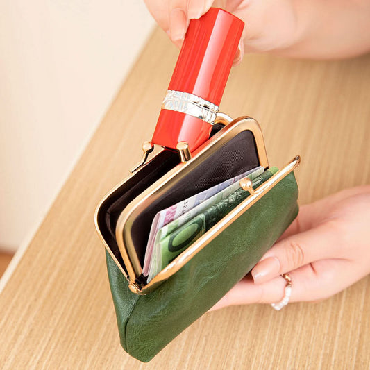 Women's PU Leather Coin Purse – Retro Clip Key Card Wallet - Purple