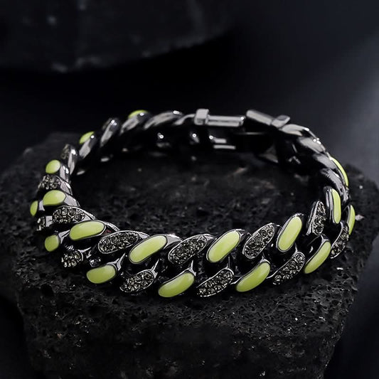 Men’s Glow-in-the-Dark Cuban Bracelet – Double-Layer Contrast Chain