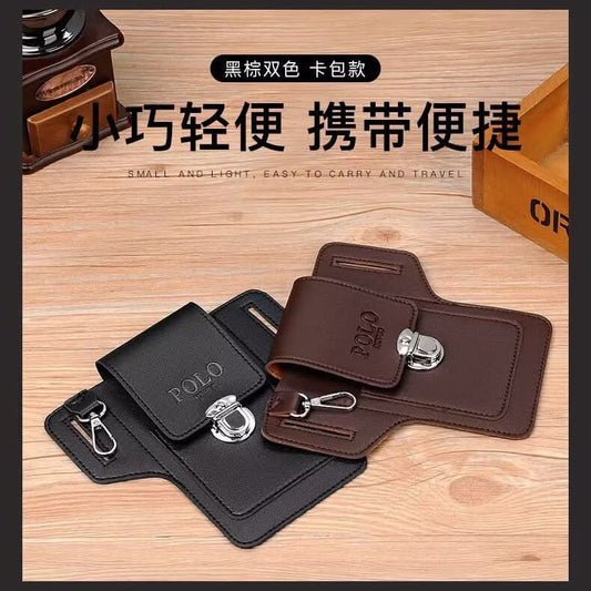 Men’s Leather Phone Waist Bag – PU Leather Pouch with Card Holder & Key Hook - Black