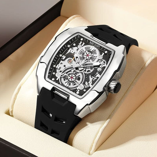 Men’s Square Chronograph Sports Watch – Calendar, Silicone Strap - Red
