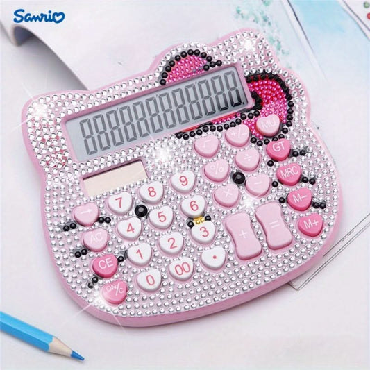 Bow Shaped Hello Kitty Crystal Diamond 12-Digit Calculator – Solar-Powered - Pink