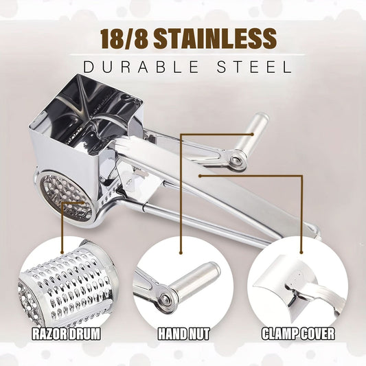 Stainless Steel Rotary Cheese Grater - Dishwasher Safe