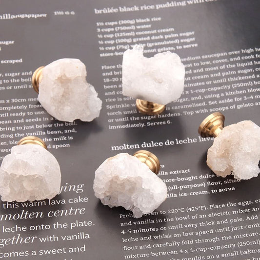 6-Pack White Crystal Stone Drawer Pulls – Natural Raw Stone Handles - White Crystal