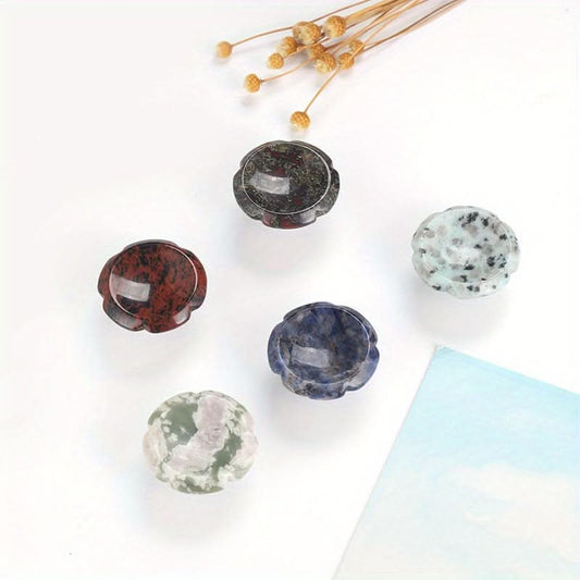 6-Pack Stone Flower Cabinet Handles – Round Aluminum Base with Natural Relief Stone Design