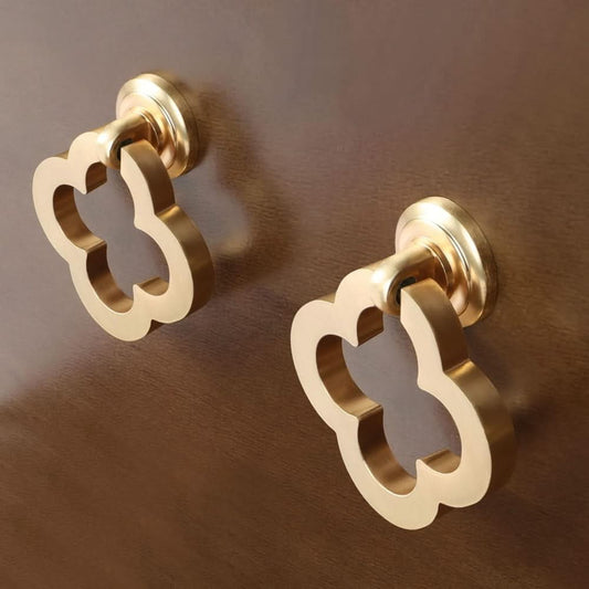 6-Pack Clover Brushed Brass Knobs – Stylish Metal Pull Handles - White