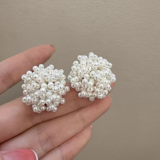 Elegant Faux Pearl Stud Earrings – Luxurious Fashionable Jewelry for Women - White