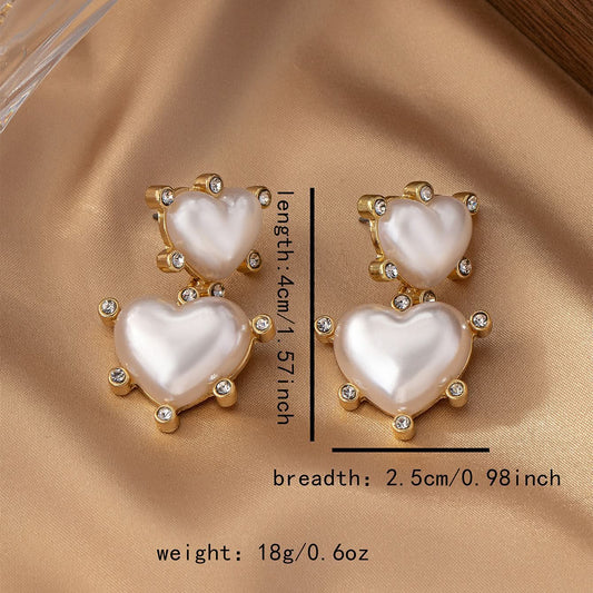 Heart-Shaped Pearl Diamond Drop Earrings - Gold