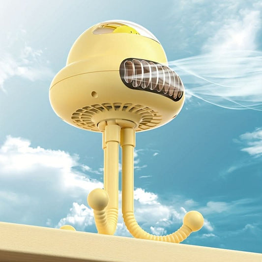 Cartoon Octopus Clip-On Fan – USB Rechargeable - Yellow