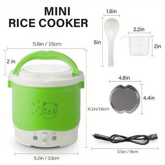12V Portable Car Rice Cooker – Mini Travel Rice Cooker with Keep Warm Function - Green