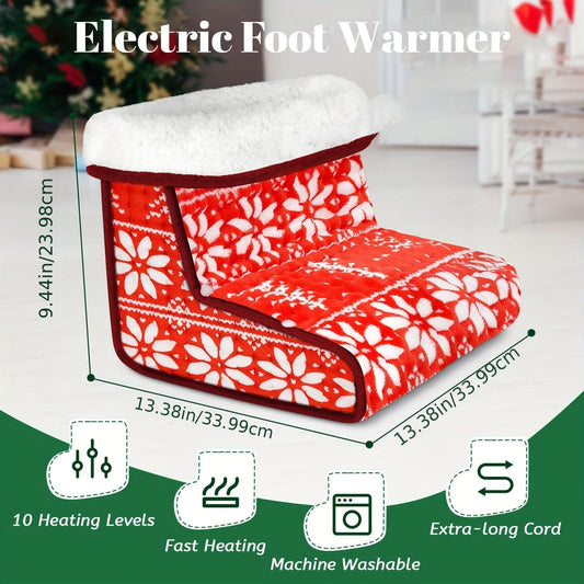 Electric Foot Warmer Boots – Flannel Heated Foot Pad for Office & Home - Red