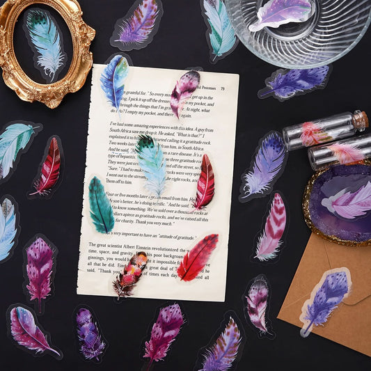 Transform your creative projects with our 240 Multi-Color Feather Stickers Set! This vibrant collection features six unique styles of transparent, waterproof decorative stickers designed to elevate your scrapbooking, journaling, and notebook creations. Crafted from high-quality polyethylene terephthalate (PET), these self-adhesive stickers offer a glossy...- ₹ 829