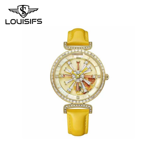 LOUISIFS Women's Rotating Watch – Luminous Dial, Lucky Charm Design - Yellow