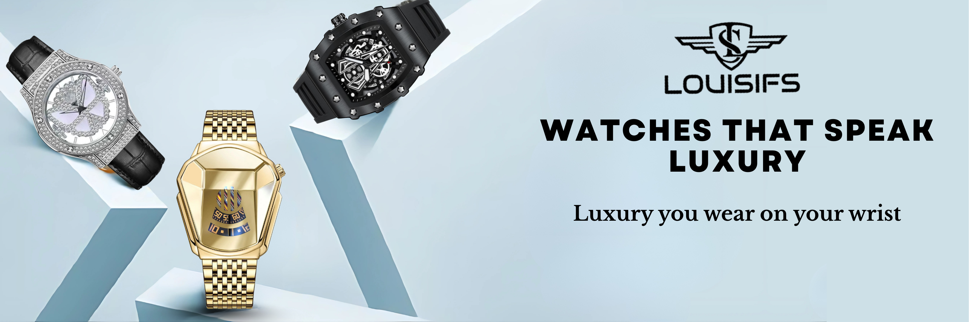 LOUISIFS Men’s Quartz Watch – Skeleton Back, Waterproof & Luminous - Gold Black