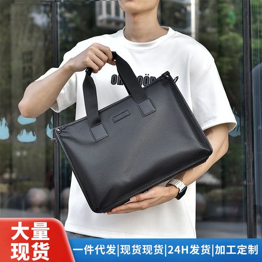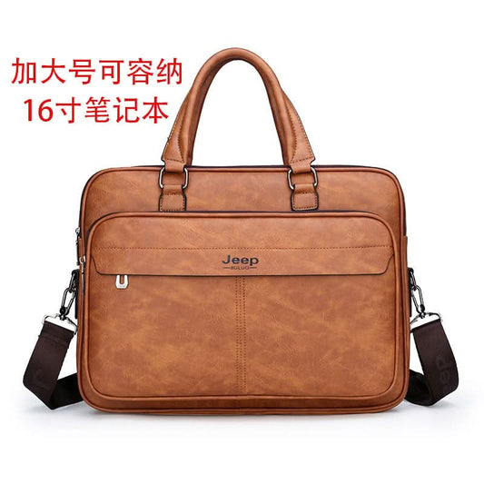 Men’s PU Leather Business Bag – 16" Laptop Briefcase, Waterproof & Wear-Resistant - Black