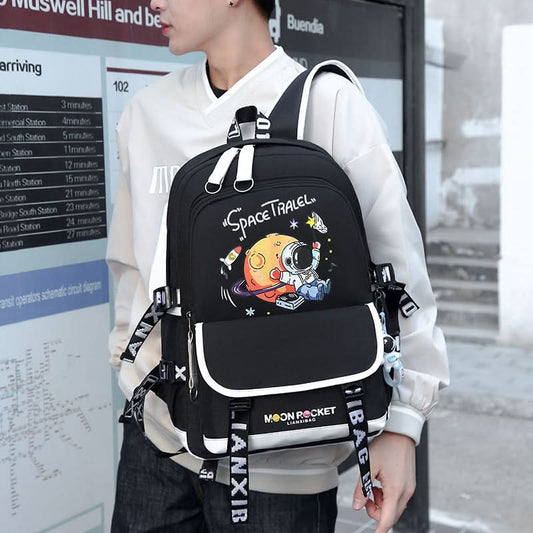 Astronaut Backpack – Large-Capacity Waterproof School Bag for Kids - Black