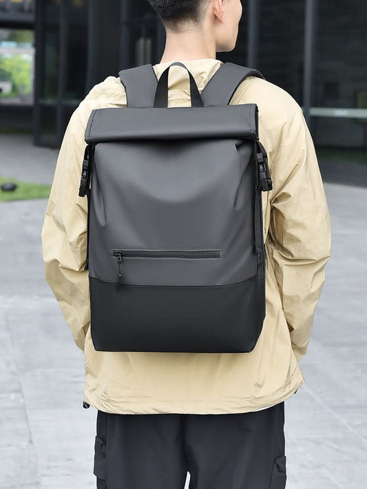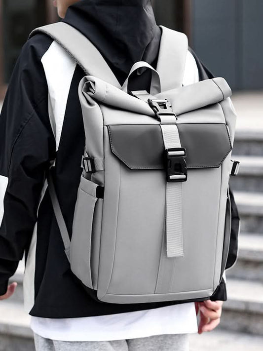 Combine style and functionality with this men's waterproof roll-top backpack, perfect for leisure travel, gym sessions, and everyday use. Crafted from durable Oxford cloth with a sleek, genderless design, this backpack is available in light grey, dark grey, and black to match your versatile...- ₹ 2,619