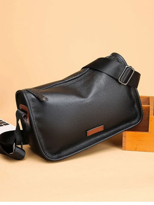 Men’s PU Leather Chest Bag – Business Travel Crossbody Shoulder Bag - Black