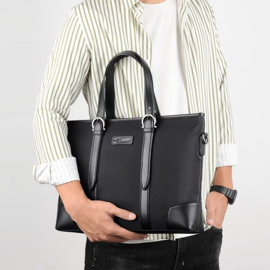 Men’s Large Handbag Briefcase – Waterproof Business Tote, Fits 16” Laptop - Black