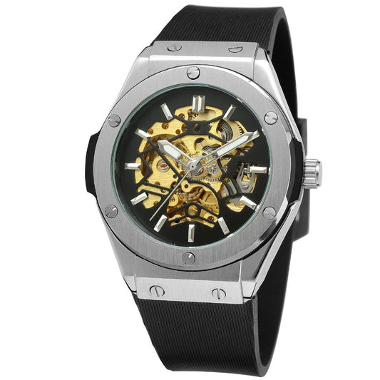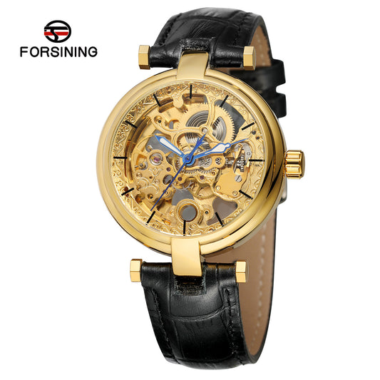 Forsining Men’s Mechanical Skeleton Watch – Fashion Timepiece with Hollow Dial - Gold
