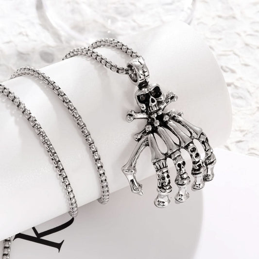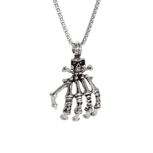 Skull Demon Hand Necklace for Men – European Fashion - Silver