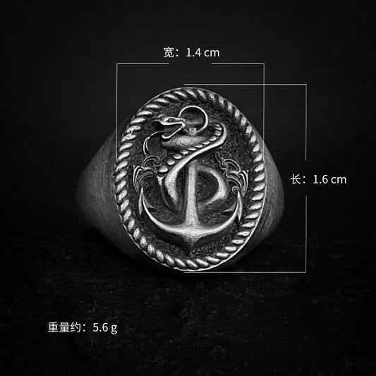 Vintage Cobra Anchor Ring for Men – Seiko Design, Copper, Punk Rock Biker Style
