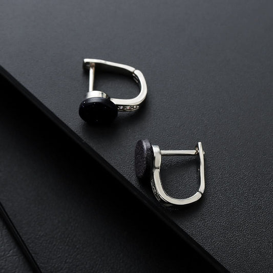 Men’s Cat’s Eye Stone Earrings – Minimalist Round Alloy Studs