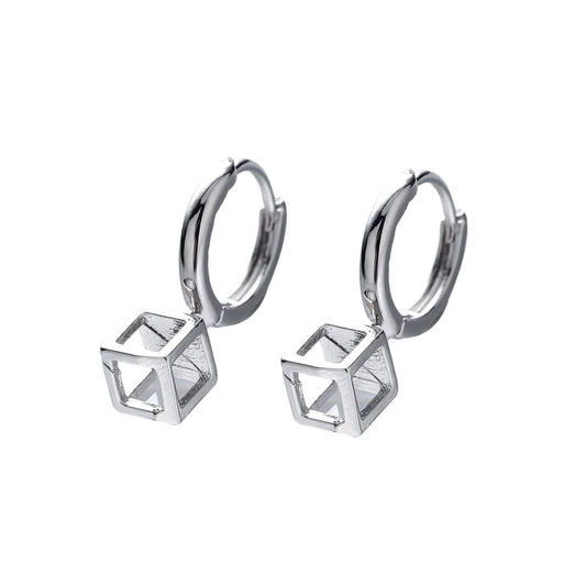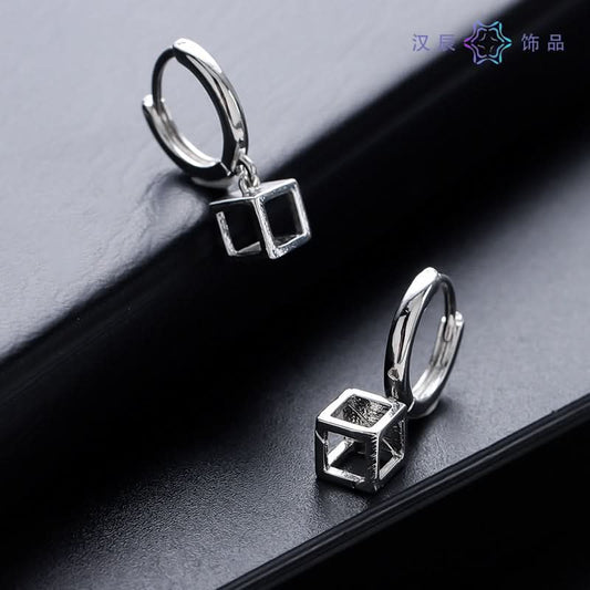 Men’s Square Punk Geometric Earrings – Silver Alloy Hip-Hop Earrings - Silver