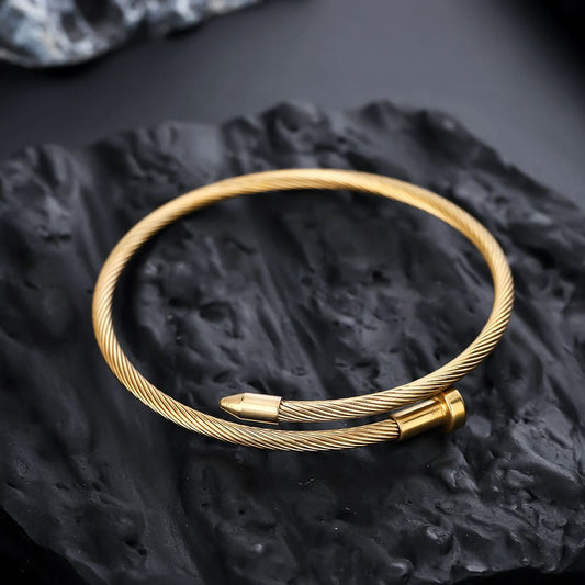 Men’s Trendy Titanium Steel Nail Bracelet – Minimalist Polished Cuff - Silver