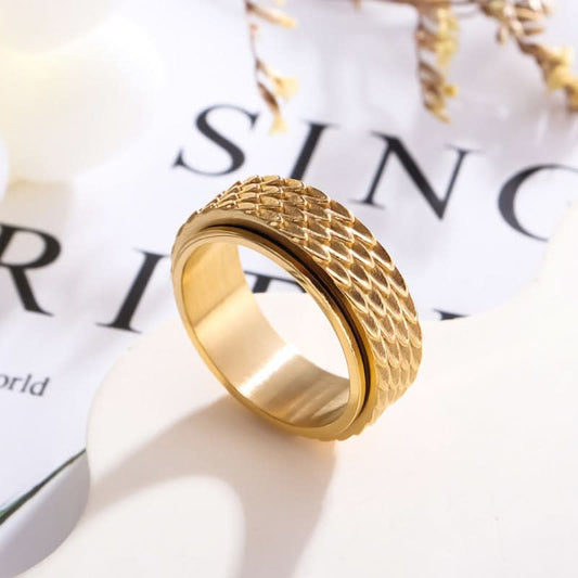 Men’s Trendy Stainless Steel Dragon Scale Rotatable Ring – Retro Spinning Band - Gold