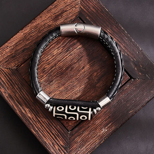 Tibetan Nine-Eye Dzi Bracelet – Braided Leather Unisex Bracelet