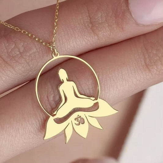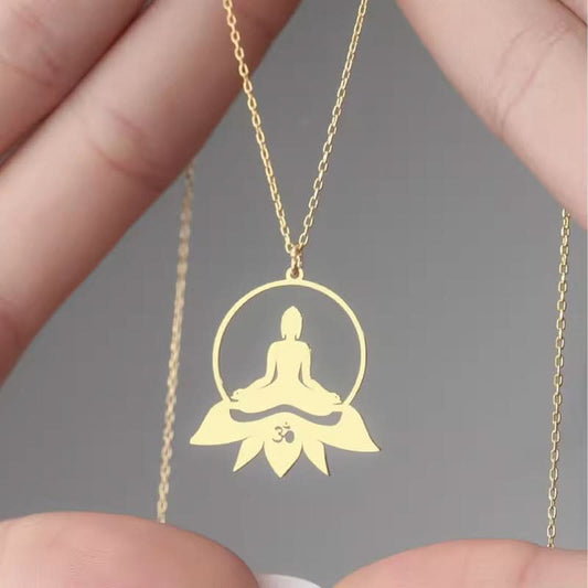 Yoga Lotus Pendant Necklace for Women – Stainless Steel Spiritual Jewelry - Gold