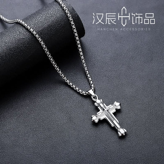 Men’s Retro Titanium Steel Cross Necklace – Minimalist - Silver