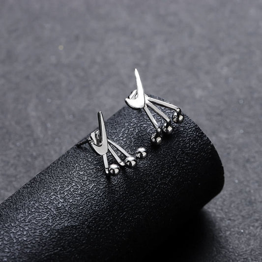 Hip-Hop Devil Wing Earrings – Edgy Geometric Ear Clips Unisex Jewelry - Silver