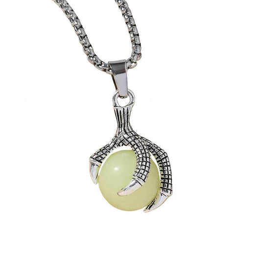 Luminous Dragon Claw Pendant Necklace with Magic Eye – Streetwear Jewelry for Unisex - Silver-blue light